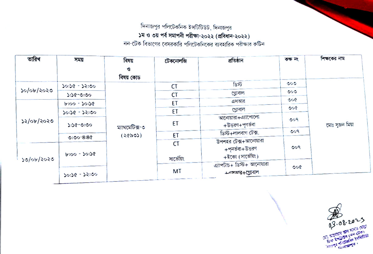 টেক্সটাইল ইঞ্জিনিয়ারিং এর ক্লাস রুটিন