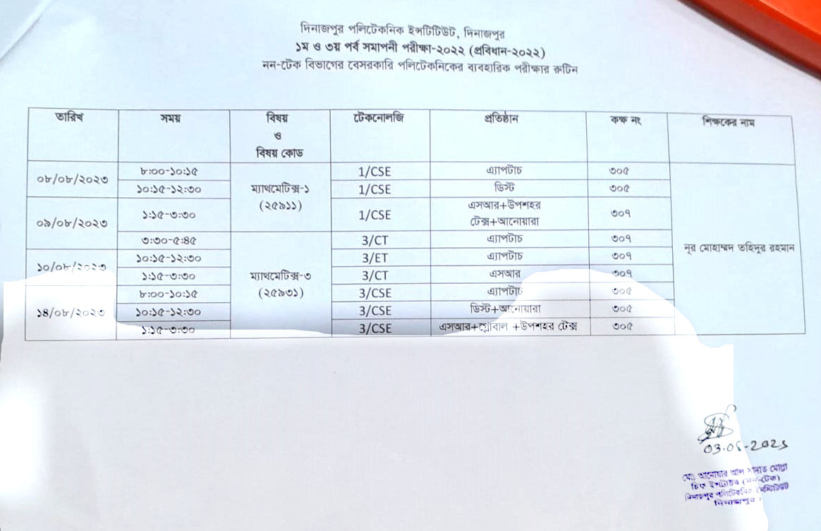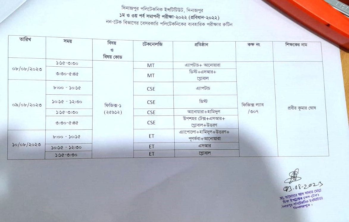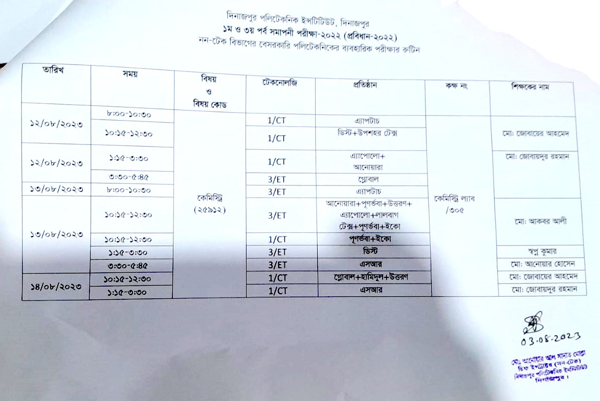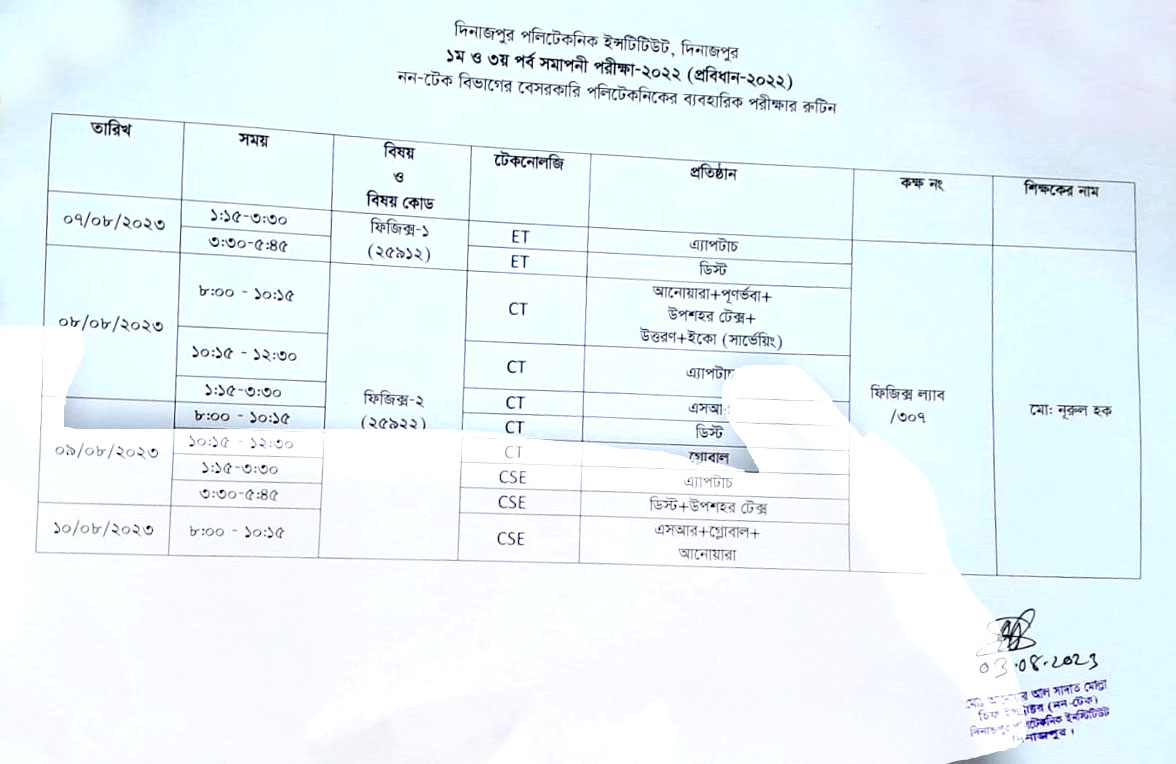 সকল বেসরকারী পলিটেকনিক ইন্সটিটউট এর ব্যবহারিক পরীক্ষা/2022 এর তালিকা