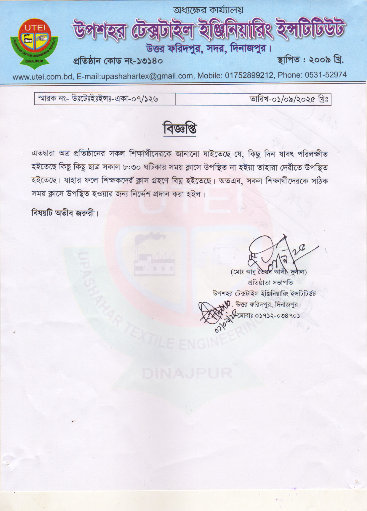 উপশহর টেক্সটাইল ইঞ্জিনিয়ারিং ইন্সটিটিউট এর অফিসিয়াল ওয়েবসাইটে আপনাকে স্বাগতম.................